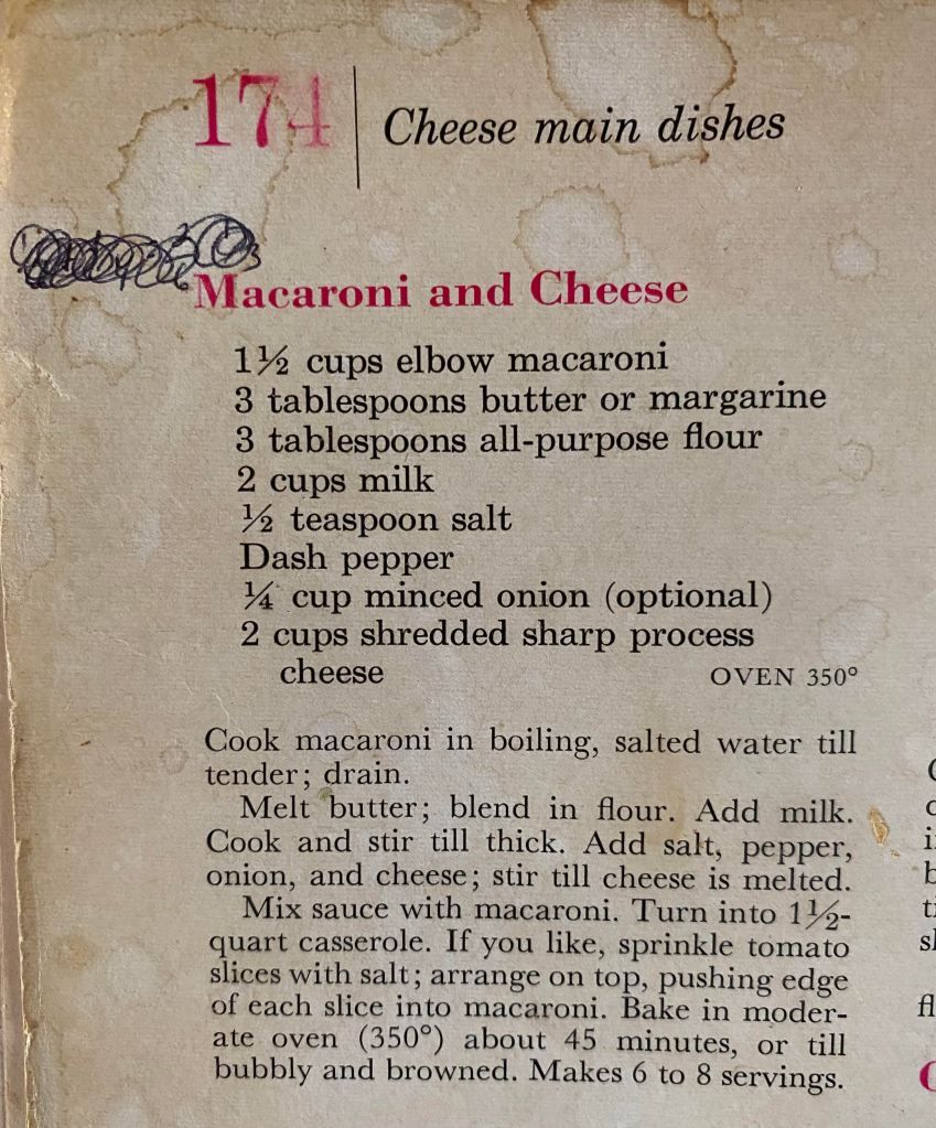 An American favourite. I have a hand written version of the one my mom used to make (from the 1965 version of the Better Homes and Gardens Cookbook, minus the onions, ewww), but over the years I’ve added and changed and altered the original recipe to suit the ingedients I can find in Australia. Cheese is quite different here and for whatever reason, there is no such thing as elbow macaroni.